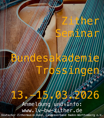 Der Deutsche Zithermusik-Bund Landesverband Baden-Württemberg e.V. lädt Freunde der Zithermusik zu einem Seminar nach Trossingen ein - egal mit welchem Spielstand und Alter, gerne auch Kinder und Jugendliche!