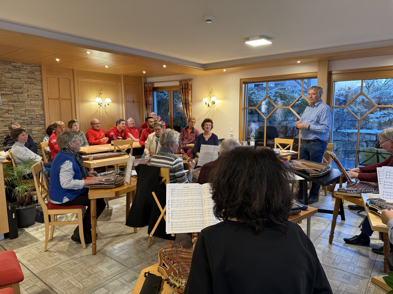 Am 22.11.2025 trafen sich 14 Zitherspielerinnen und Zitherspieler zur Zither-Hocketse in Leidringen mit dem charmanten und erfahrenen Musiker, Musiklehrer und Komponisten Jörg Lanzinger.
